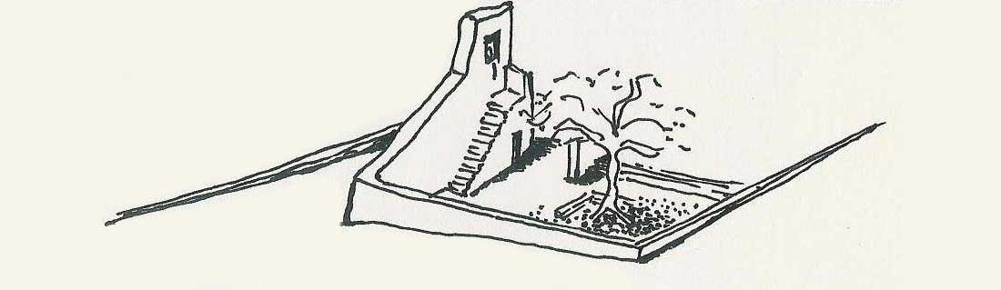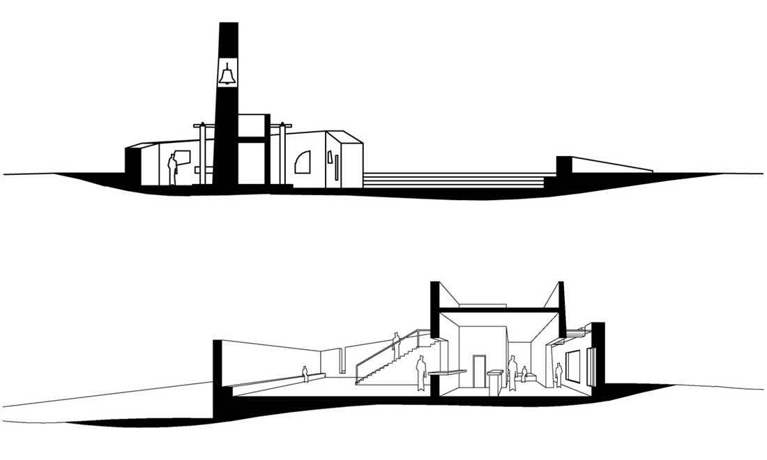 קירות אדמה נפחיים, הצומחים מן הקרקע, מתקפלים, מתפתחים בחלל ויוצרים מבנה - לא מבנה, פשוט, תמים, השואב השראתו מן העבר, מן השרידים.